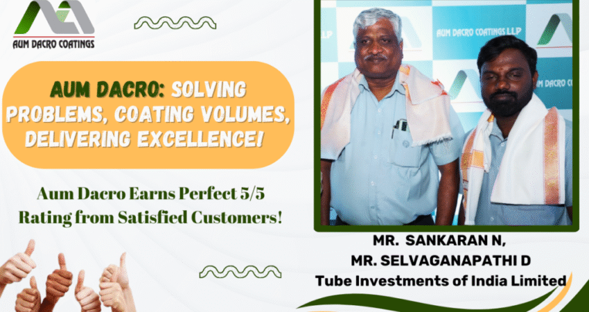 We are thrilled to share an outstanding achievement that marks a significant milestone in our journey of excellence at Aum Dacro Coatings. Recently, we received a PERFECT 5/5 rating from one of our esteemed clients, Tube Investments of India Limited. This glowing testimonial is a reflection of our relentless commitment to quality, innovation, and customer […]